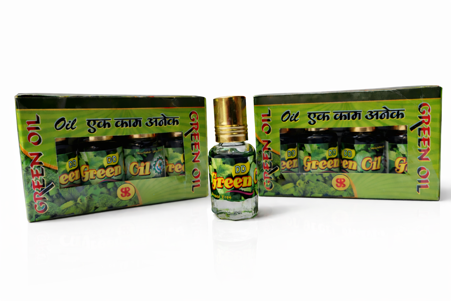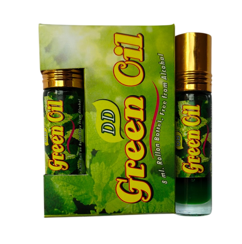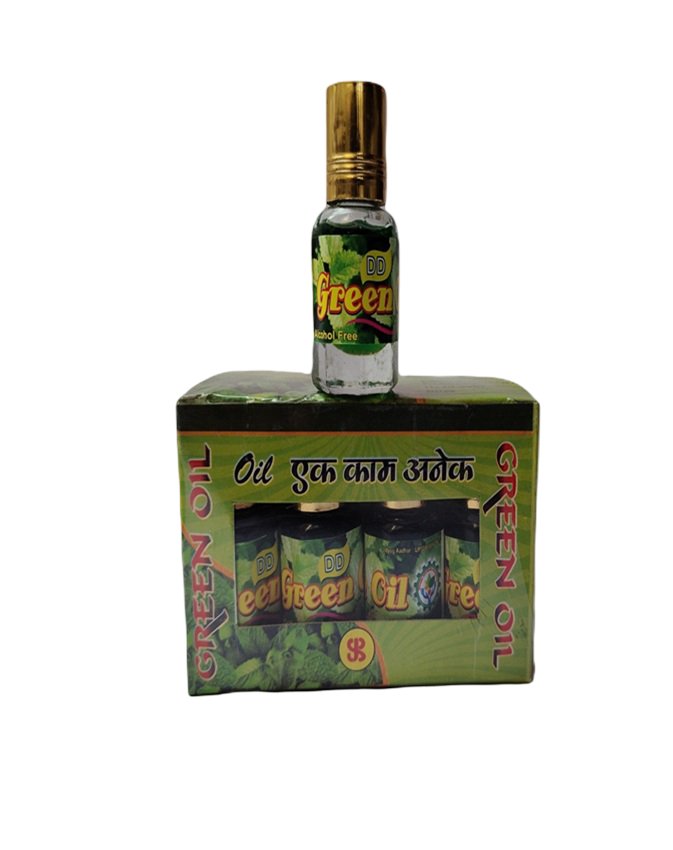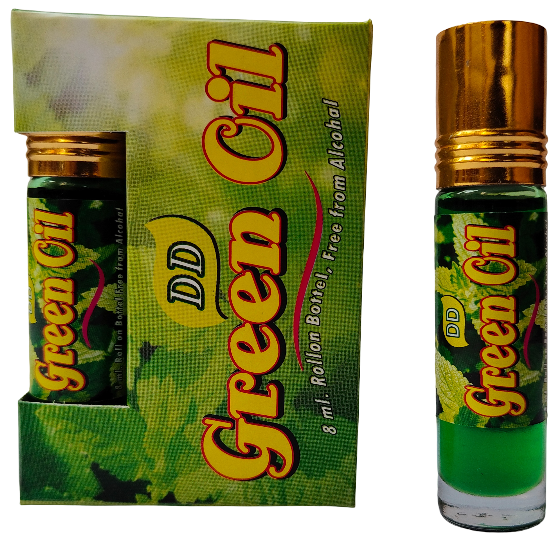 Formulated with Clove, Eucalyptus, Mint, Camphor, Wintergreen Oil, and other essential Ayurvedic extracts, DD Green Oil helps relax nerves, reduce tension, and uplift your mood through its calming aroma.