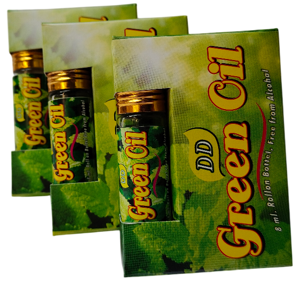 DD Green Oil helps relieve migraine, headache, stress, fatigue, cold discomfort, and mental tension using powerful Ayurvedic herbs like clove, eucalyptus, mint, camphor, and wintergreen oil.